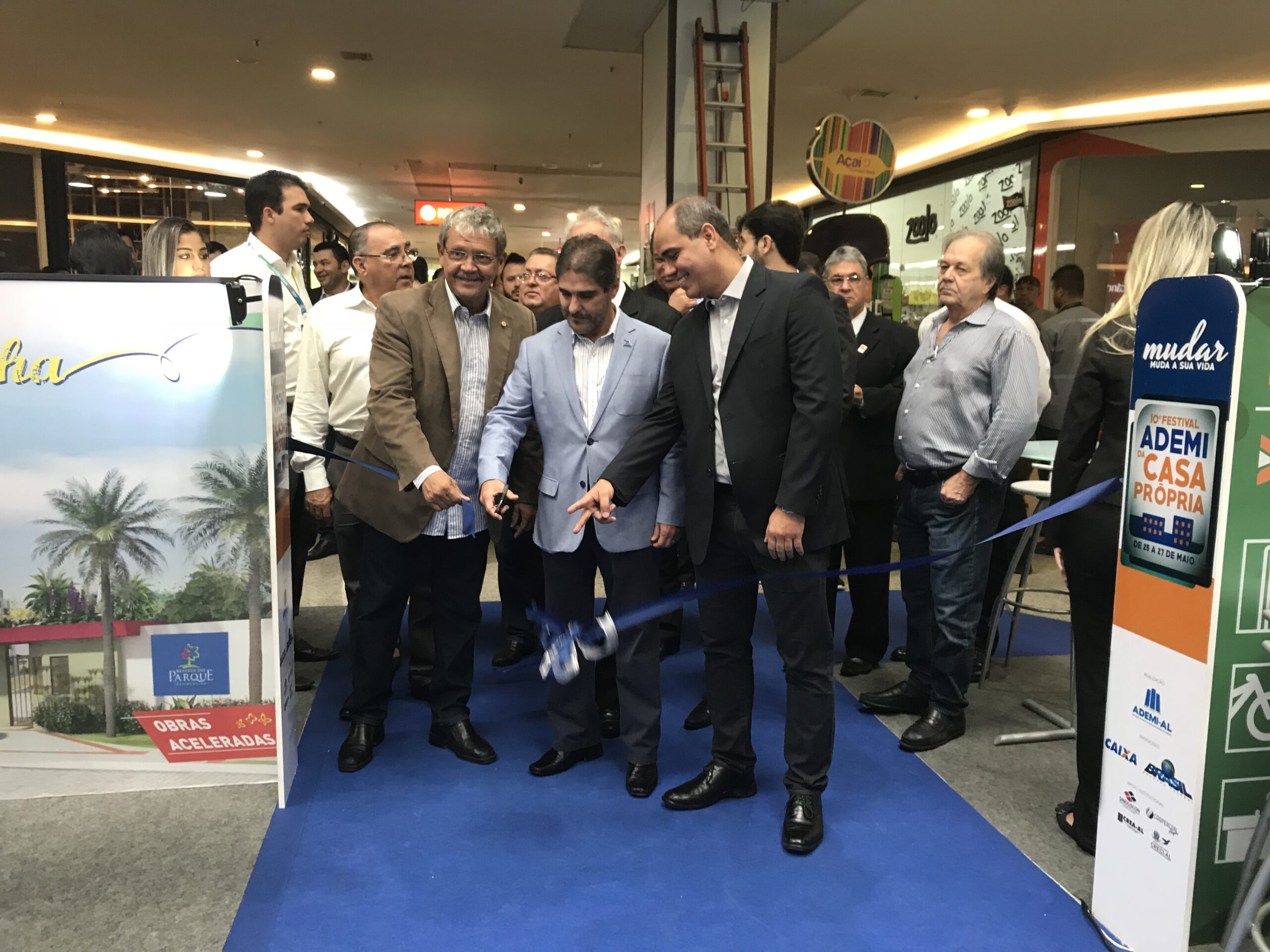 Muita energia positiva e expectativa de bons negócios marcaram a abertura do 10º Festival Ademi da Casa Própria, realizada na manhã desta sexta-feira (25), na praça central de eventos do Maceió Shopping. O Festival, que é uma realização da Associação das Empresas do Mercado Imobiliário de Alagoas (Ademi-AL), foi prestigiado por diversas autoridades, como o superintendente regional da Caixa, Kleber Paz, o presidente do Conselho Regional dos Corretores de Imóveis de Alagoas (Creci-AL), Wilmar Pinto, o presidente do Conselho Regional de Engenharia e Agronomia de Alagoas (CREA-AL), Fernando Dacal, e o superintendente do Maceió Shopping , Robson Rodas, entre outros.