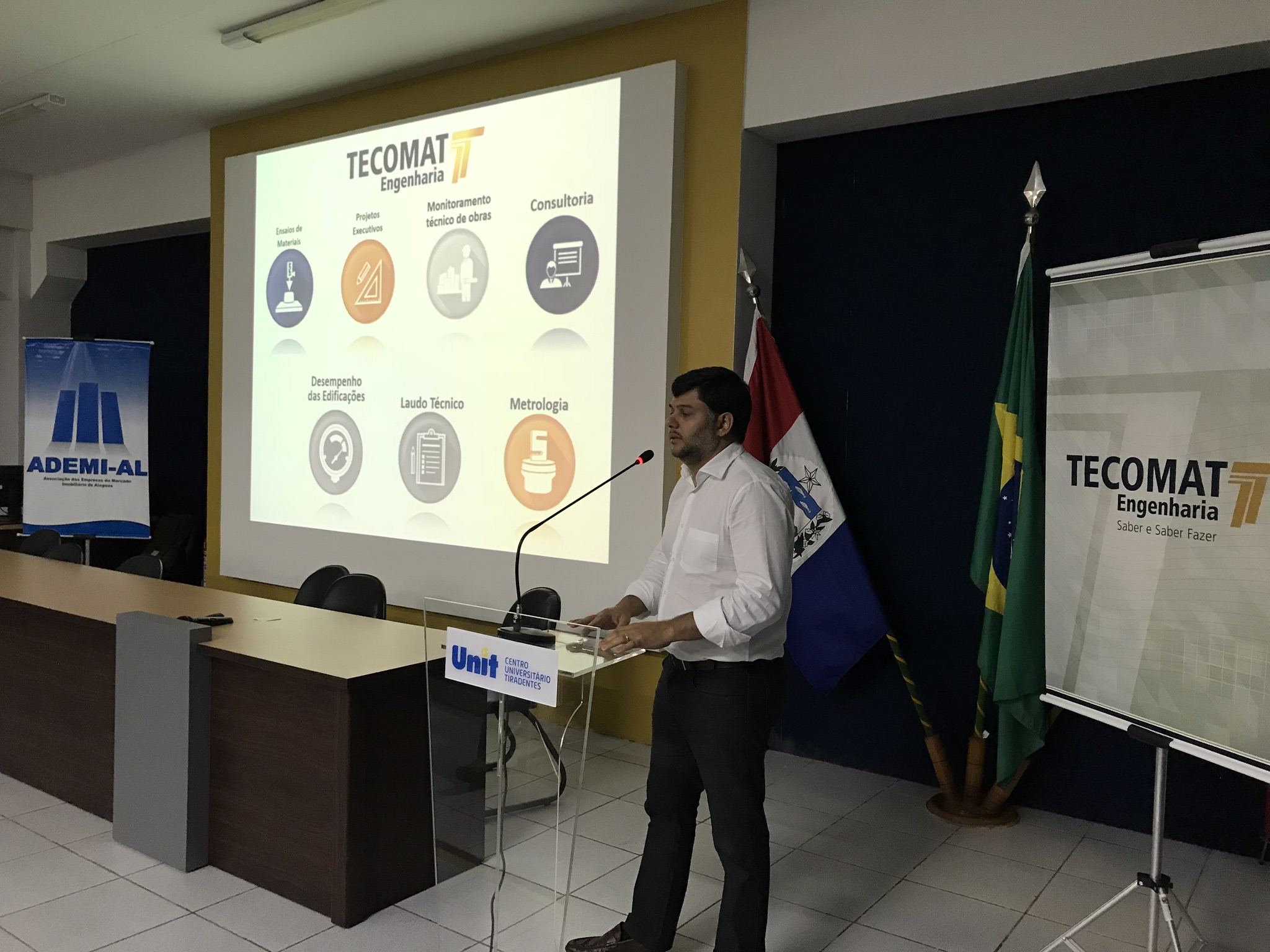 As palestras do seminário foram ministradas por profissionais conceituados de empresas parceiras à Ademi e da Tecomat Engenharia, uma empresa que há 25 anos é especialista em prestar consultorias sobre engenharia civil, com o intuito de oferecer as técnicas mais inovadoras no ramo, compartilhando soluções e boas práticas para o setor. O sócio diretor da empresa, José Maria Neto, mencionou a satisfação em poder estar expandindo os trabalhos da empresa para Alagoas.