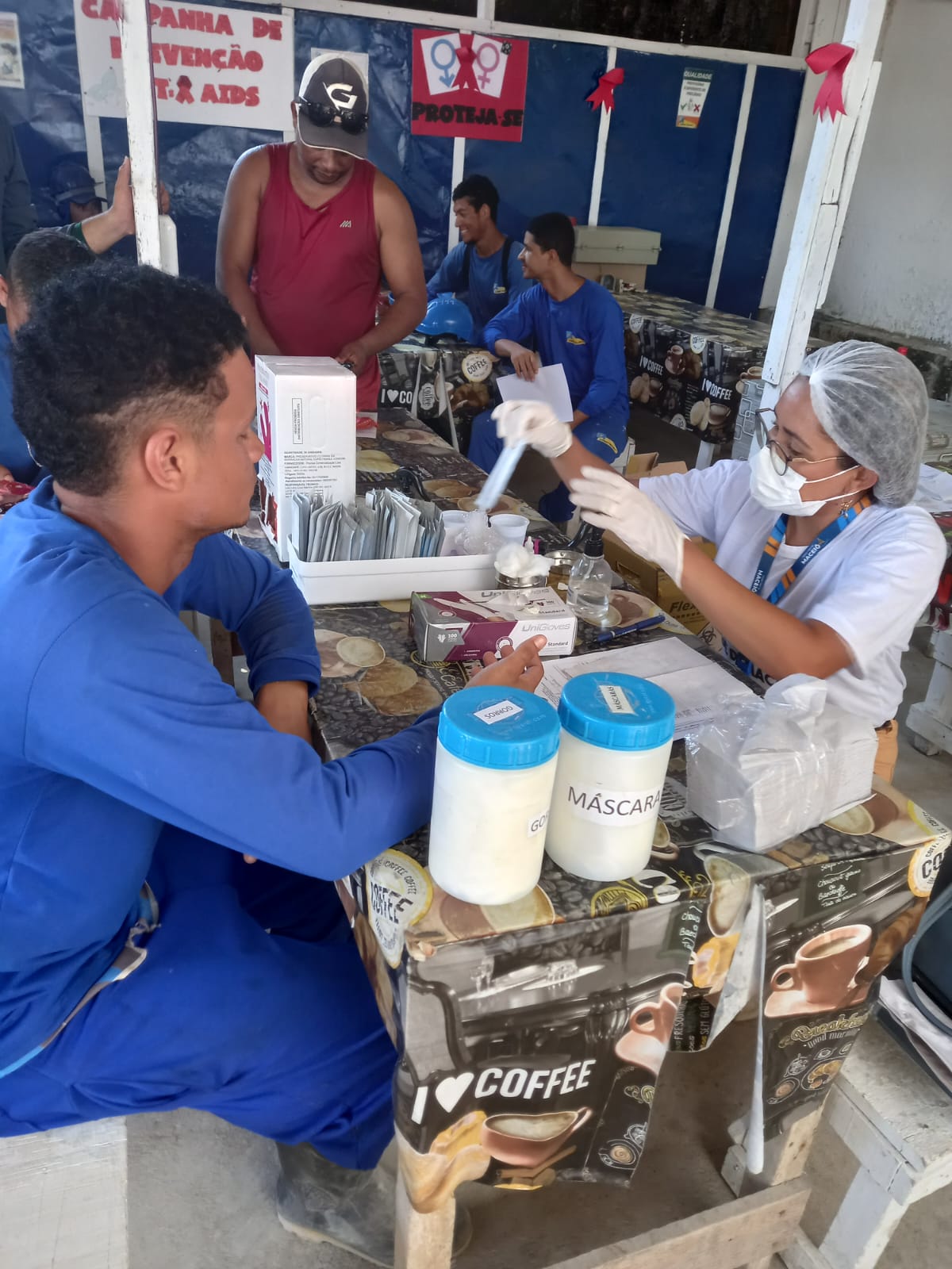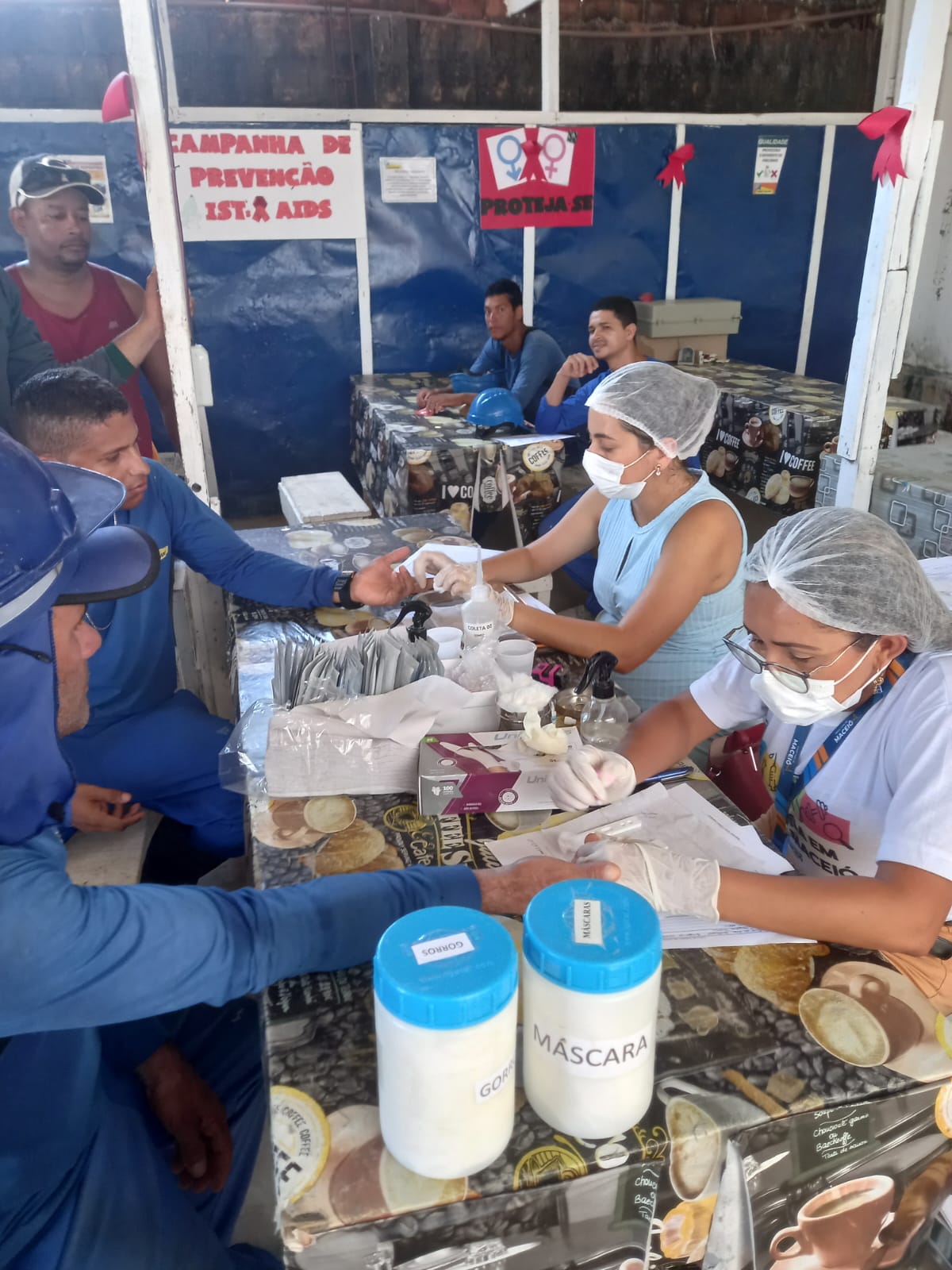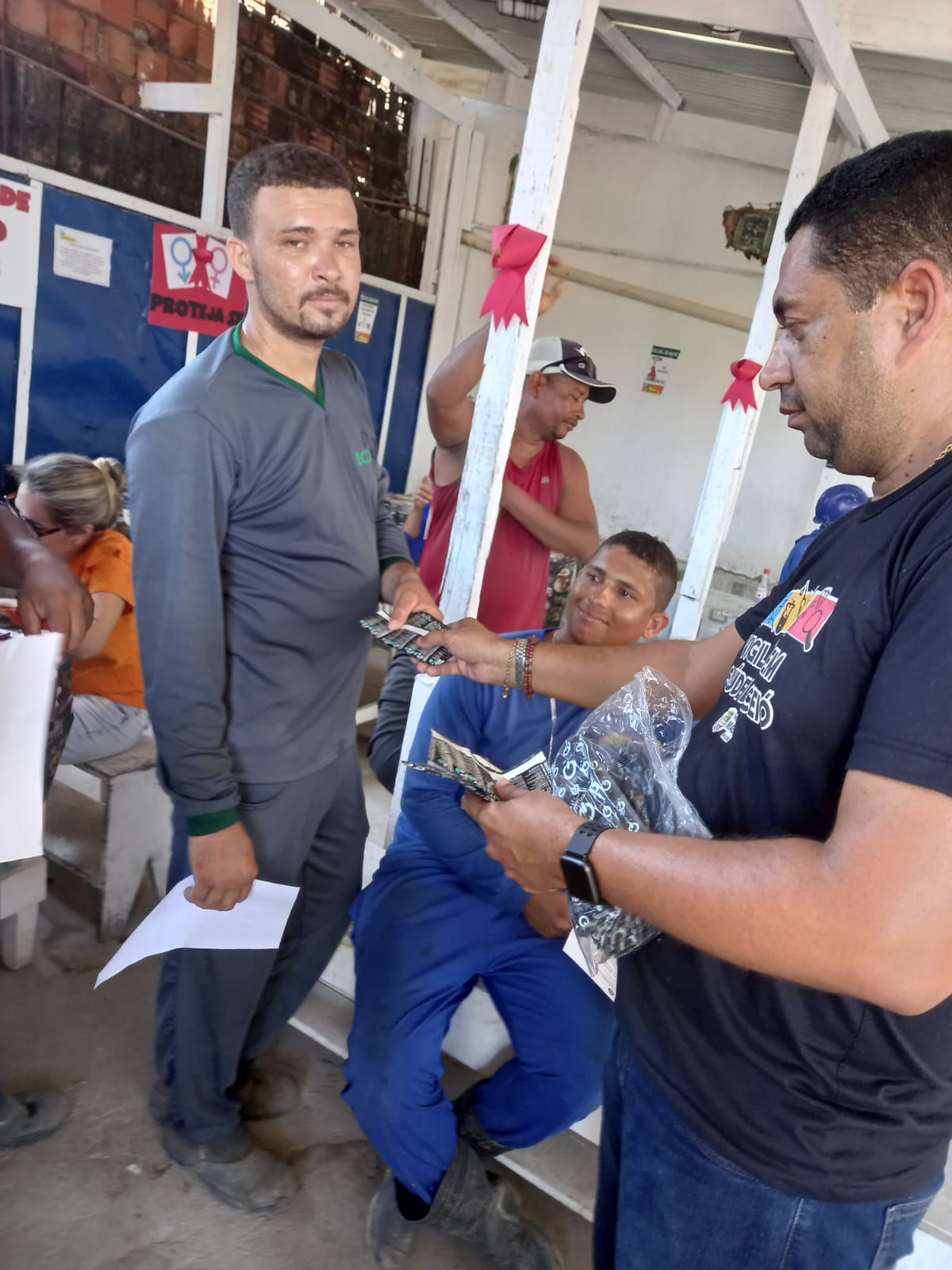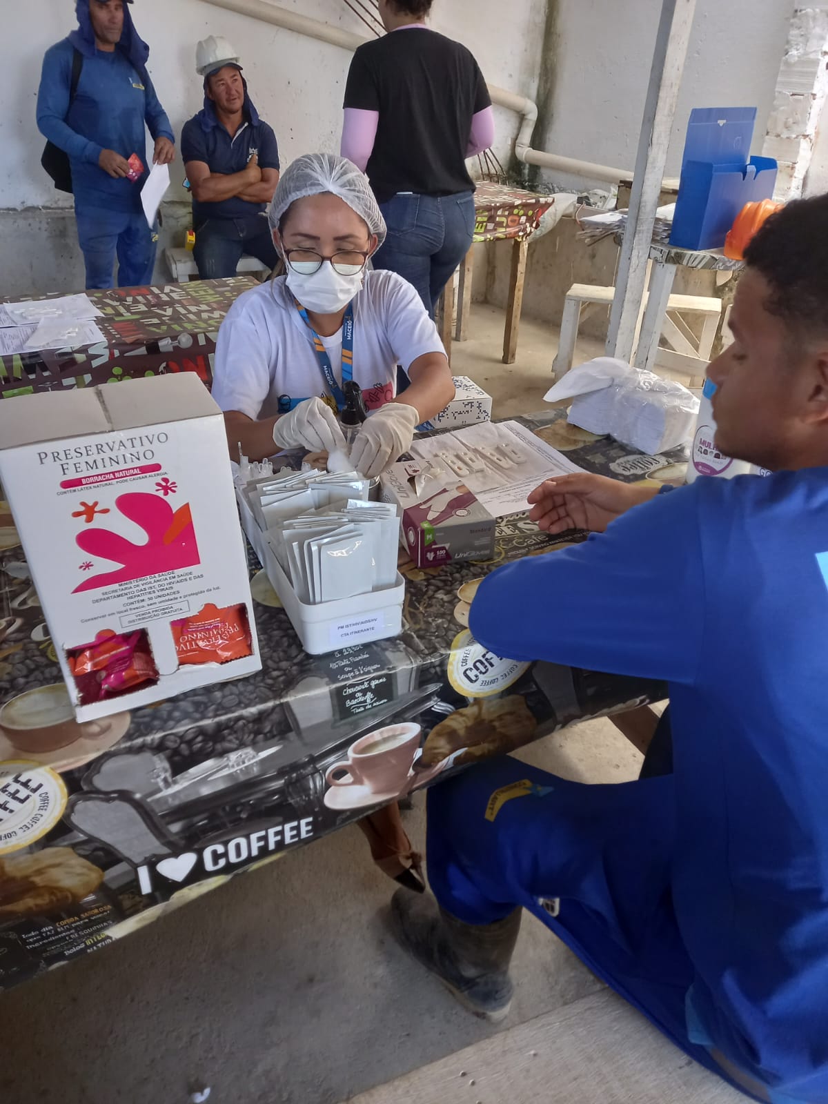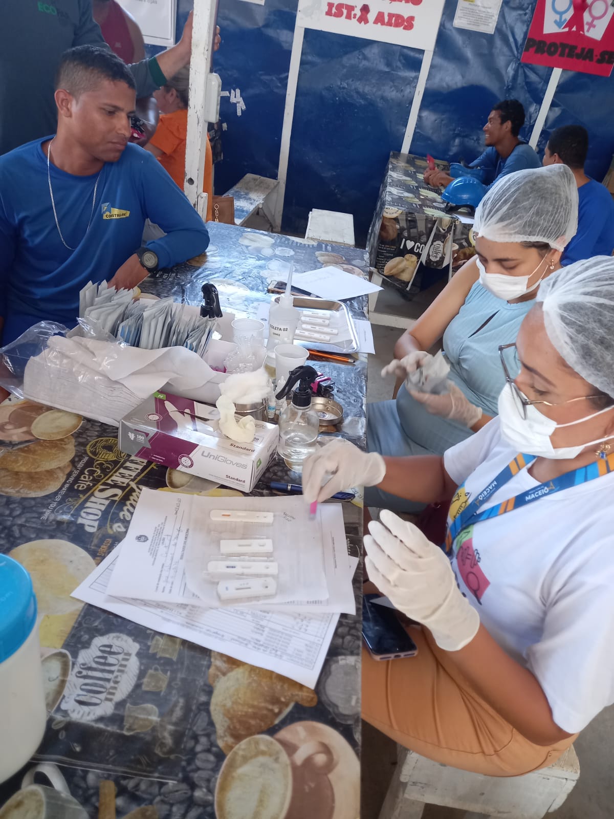 No momento, representantes da saúde ministraram uma palestra sobre a prevenção de infecções sexuais, distribuíram preservativos e realizaram testes rápidos nos colaboradores interessados em cuidar da saúde.